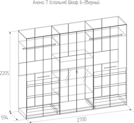 Шестистворчатый шкаф для одежды и белья Анона 7 (Глазов)
