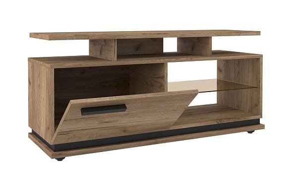 Чтобы сохранить легкость и простор в маленькой гостиной выбирайте Тумба ТВ малая. Низкая мебель сделает комнату просторнее, а стекло в сочетании с древесным декором создаст ощущение простоты. Комбинированный вариант открытых полок со шкафчиком с глухим фасадом отлично подойдет для размещения игровой приставки, дисков и геймпадов. Ширина тумбы позволит без труда разместить телевизор с диагональю до 44''. Регулируемые опоры позволят компенсировать незначительные неровности пола.