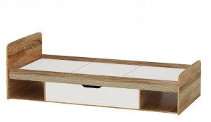 Кровать Стелс со скругленными изголовьем и спинкой имеет открытые ниши для хранения и большой ящик для белья, с помощью множества роликов его легко выдвинуть. Для безопасности и удобства открывания выдвижной ящик вместо ручек оснащен выемками на лицевой части фасада. Пользоваться кроватью может взрослый и ребенок любого возраста, так как она имеет размеры стандартной кровати 90х200см, устойчивую конструкцию и нейтральный для интерьера цвет. Идеально компонуется со всеми модулями системы Стелс. Мебель выполнена из высококачественных экологичных материалов.