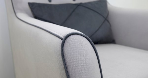 Декоративный кант на кресле, защипы на декоративной подушке, пуговицы на спинке