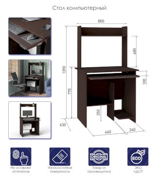 | Комплектация | выдвижная полка под клавиатуру / местодля принтера (техники) / ниша под системный блок |