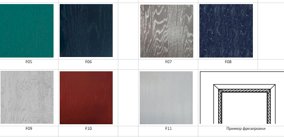 Цвет нижних фасадов: F05 (синий дип), F06 (альберо ночи), F07 (дуб серебро графит), F08 (дуб серебро синий), F09 (дуб серебро белый), F10 (альберо россо), F11 (айс)