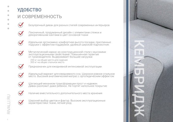 Прямой диван Кембридж (Rivalli) - за 115 922 руб. в Иваново. Купите на сайте ivanovo.onlinemarketmebeli.ru или по телефону 8(800)505-30-63 уже сегодня! Уточнить наличие, комплектацию, актуальную цену можно бесплатно у менеджера ежедневно. Закажите Прямой диван Кембридж (Rivalli) до конца акции! Доступна покупка в кредит, рассрочку. Доставим со склада или на заказ.