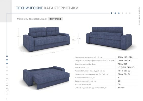 • Шагающий механизм трансформации прост и надежен. Диван разложит даже ребенок. Не портит напольное покрытие