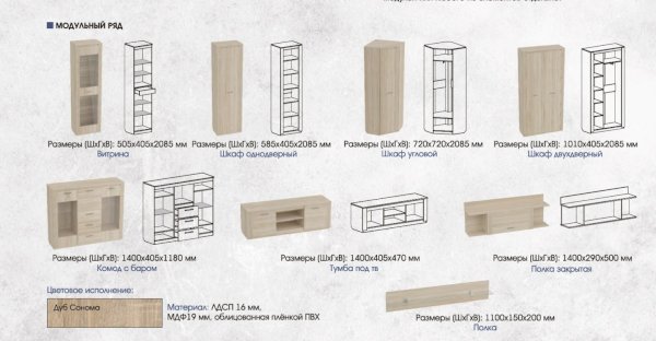Модульная гостиная Элана Дуб сонома (МБГ)