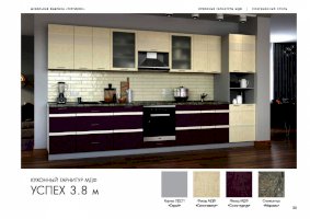Стараетесь окружить себя и своих близких самыми лучшими вещами? Выберите кухонный гарнитур «Успех»! Стильная и модная мебель станет украшением вашего дома. Ее отличают гладкие фасады и неброская фурнитура. Эффект эксклюзивности и престижности достигается с помощью элегантной комбинации нескольких цветов. Для оформления одного комплекта могут использоваться целых три оттенка. Например, шампань, жемчуг и платина.