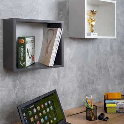 Декоративный куб в декорах Белый, Дуб Золотистый и Графит с белой задней стенкой можно использовать как навесную полку для книг и для декорирования интерьера. Куб 1 - оригинальное решение для декора комнаты подростка.