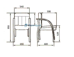 Кресло с низкой спинкой на деревянном каркасе на 4-х ножках, с подлокотниками прямоугольной замкнутой формы с мягкими накладками обитыми в цвет кресла.