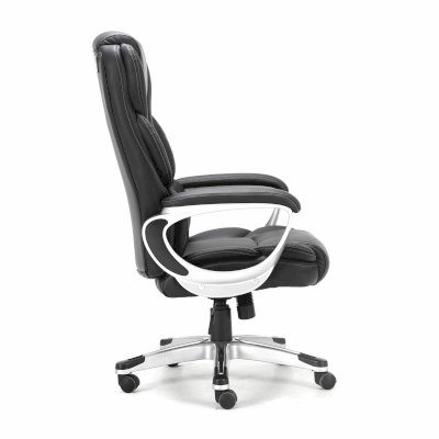 Высокая спинка с широким мягким подголовником и боковой поддержкой выводят эргономику кресла на новый уровень. Обивка выполнена из экокожи высокого качества - современного материала на хлопковой основе. Благодаря тканой основе и пористому полиуретану экокожа отлично пропускает воздух, что положительным образом сказывается на комфорте во время эксплуатации. Материал износоустойчив - кресло сохранит привлекательный внешний вид в течение длительного времени. Наличие перфорации в центральной части кресла обеспечивает дополнительную циркуляцию воздуха.