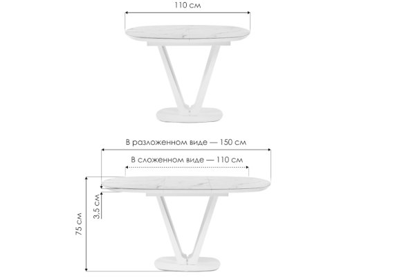 Длина разложенного столика, мм 1500