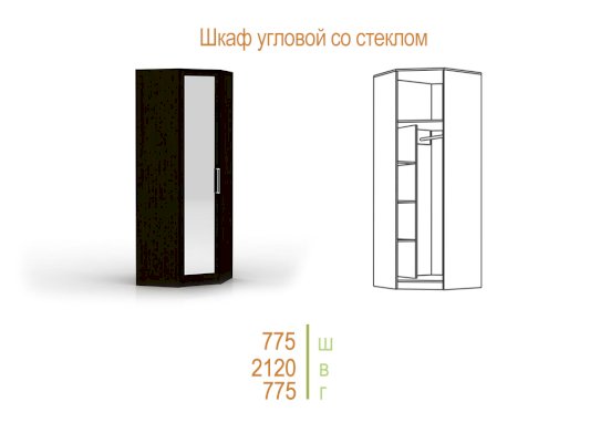 Шкаф угловой со стеклянной дверью Куба (SM Мебель)