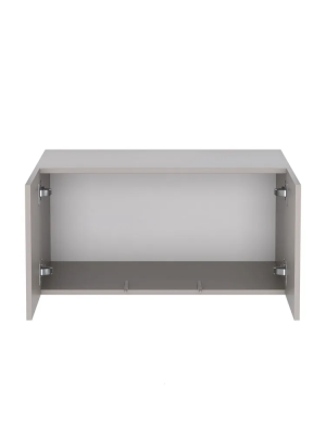 Антресоль для шкафа имеет две дверцы, открывающиеся в стороны. За ними расположено место для хранения вещей (одежды, постельного белья или принадлежностей). Обе дверцы открываются с помощью механизма от нажатия (push to open). Дверцы с доводчиками, оборудованы соответствующими накладными и полунакладными петлями.