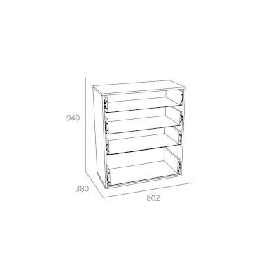 Комод Livorno НМ 040.46 идеально впишется в интерьер современной гостиной или спальни. Модуль оснащен четырьмя вместительными ящиками, плавный ход которых обеспечивают шариковые направляющие полного выдвижения. Верхние ящики меньше нижнего, поэтому подходят для хранения более легких вещей. На фасадах предусмотрено по две ручки, что обеспечивает максимально удобное открывание ящиков.
