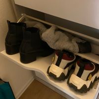 Обалденная обувница! Качество отличное! Самое главное цвет бетона хороший. Сами белые ящики без какой-либо текстуры, просто гладкие. Сборка, в принципе, лёгкая, но немного был недочёт, что нужно крепить внутренние деревяшки. И ещё не хватило запасных шурупов, так как их вообще не было. Все остальное очень хорошее. В ящики с разделением помещается не крупная обувь, а вот с крупной уже немного туго, приходится немного мять. Зимние ботинки мужа помещаются вообще только в ящик без разделения, но это не критично. Балку можно зафиксировать шурупами или просто так вставить. Очень довольна качеством!
