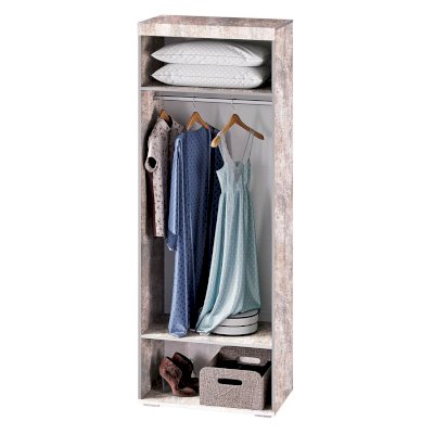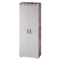 Организовать хранение в современном интерьере можно с помощью стильного двухстворчатого шкафа Инстайл. Модель полностью выполнена из ЛДСП из комбинации двух цветов – серый и белый. Две распашные створки дополнены геометрическими удлиненными ручками. Внутреннее наполнение состоит из двух ниш для необходимых вещей и отделения с хромированной штангой для одежды на вешалках.