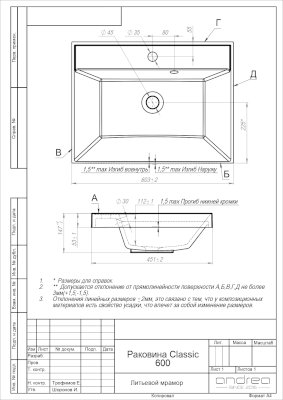 Раковина Classic (Andrea)