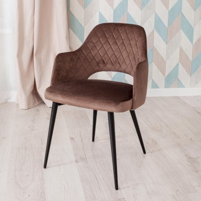 Удобный и практичный дизайн кресла VALKYRIA из коллекции Modern позволит ему вписаться практически в любой интерьер. Кресло можно расположить в гостиной, кухне или столовой. Подчеркнутый цветовой контраст изделия и его лаконичные формы идеально соответствуют концепции современного стильного пространства. Простая форма, стеганая обивка и черные металлические ножки придают креслу особую привлекательность, оригинальность и визуальную легкость. Мягкое сиденье и спинка позволяют комфортно расположиться на длительное время. Практичная тканевая обивка коричневого цвета отличается устойчивостью к износу и долговечностью, благодаря чему кресло не требует специального ухода и будет долгое время радовать вас своим первоначальным видом.