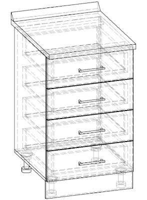 Пенал однодверный 4 ящика 600 КП.002.600-01