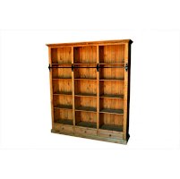 Трехсекционный шкаф с открытыми полками. Просторный и крепкий, он станет достойным обрамлением для вашей книжной коллекции. Для дополнительного удобства шкаф оснащен тремя выдвижными ящиками. Задние стенки библиотеки также набраны из массива сосны.