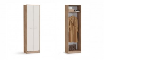 Интер – современная прихожая в стиле минимализм - минимум декора, максимум функционала. Компактная и вместительная, с небольшой глубиной – она поможет правильно организовать пространство в небольшом помещении. Прихожая включает в себя необходимые модули: вешалка с крючками, вместительные обувницы, выдвижные ящики для мелочей, зеркало и двухстворчатый шкаф с выдвижной вешалкой и полками. Модное сочетание нейтральных цветов дуба сономы и белого наполнит комнату теплым и мягким светом, визуально увеличит пространство. Прихожая подойдет тем, кто любит практичность и разумность. Хорошо сочетается с модулями системы Стелс.