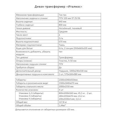 Диван-трансформер Италмас (Аквилон) - за 73 382 руб. в Иваново. Купите на сайте ivanovo.onlinemarketmebeli.ru или по телефону 8(800)505-30-63 уже сегодня! Уточнить наличие, комплектацию, актуальную цену можно бесплатно у менеджера ежедневно. Закажите Диван-трансформер Италмас (Аквилон) до конца акции! Доступна покупка в кредит, рассрочку. Доставим со склада или на заказ.