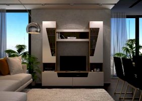 Отсутствие ручек является особенностью серии "Анталия", что придает современный и лаконичный внешний вид. В состав гостиной "Анталия" входит вместительный шкаф, а добавив комод можно получить еще больше места для хранения.
