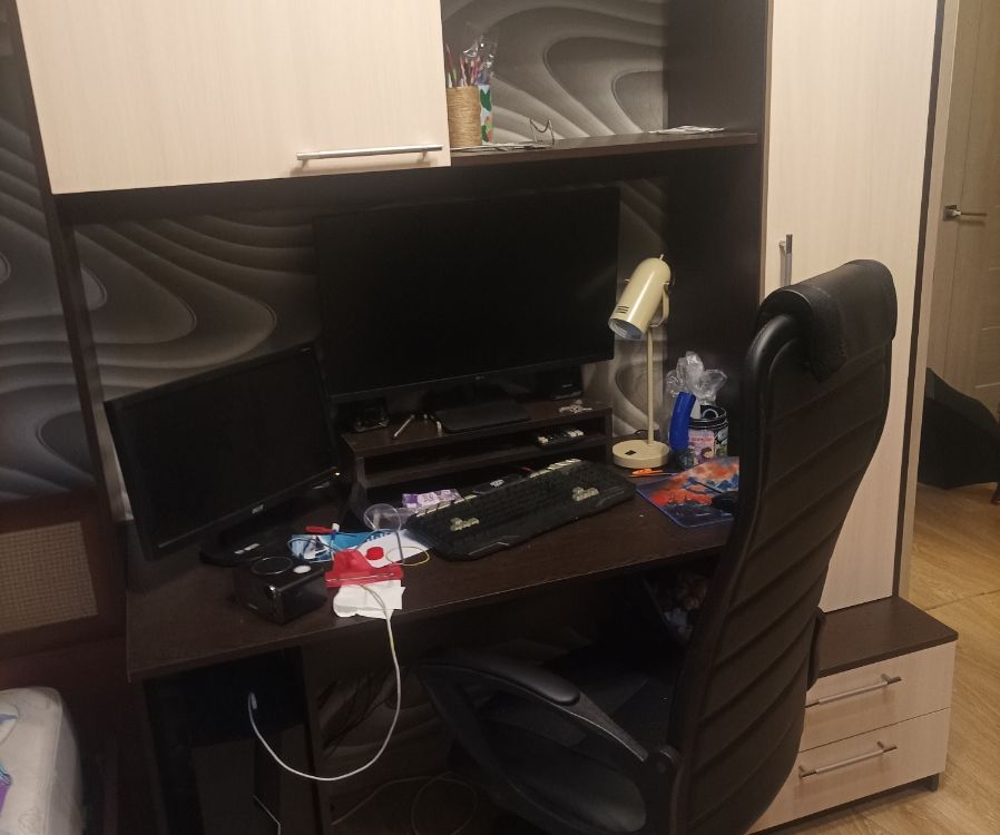 Удобный, вместительные шкафы, компактный, большоее рабочее место