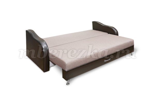 Модель «Леон» - это диван с бельевым ящиком, в котором можно хранить как постельные принадлежности, так и  другие вещи. Прочные металлические изогнутые ножки делают модель очень устойчивой. В комплект входят диванные подушки, позволяющие комфортно устроиться на диване. Они достаточно мягкие, поэтому их можно использовать для сна. Для удобства ухода за декоративными подушками наволочки съемные, что значительно облегчает уход за мебелью. Механизм трансформации «еврокнижка», используемый в диване, прост и надежен в эксплуатации.