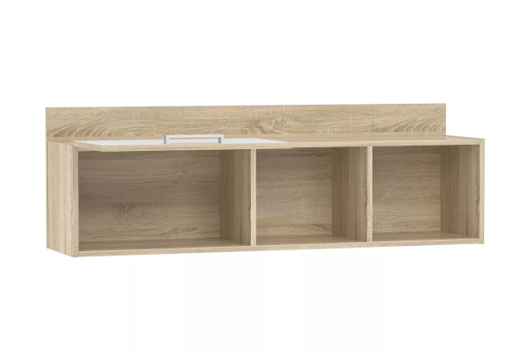 Полка НМ 011.38-01 М1 органично дополнит рабочее место в детской. Закрытая секция модуля подойдет для хранения книг. Газлифты максимально высоко поднимают фасад вверх, обеспечивая большую площадь обзора содержимого. Предметы декора будут хорошо смотреться в открытых секциях полки.