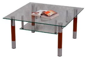 Журнальный стол - стеклянная квадратная столешница с полкой, ножки комбинированные с фетровыми подпятниками.