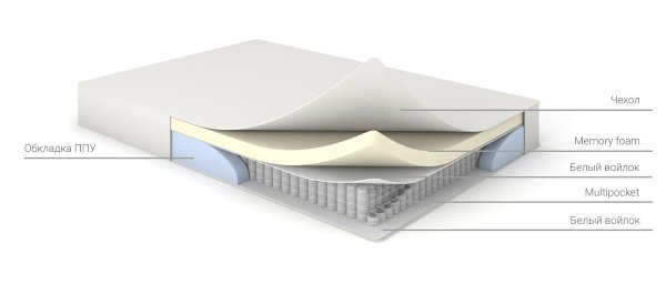 Уникальный состав основы из двух инновационных слоев:  Memory foam и блоком независимых пружин - Multipocket.