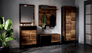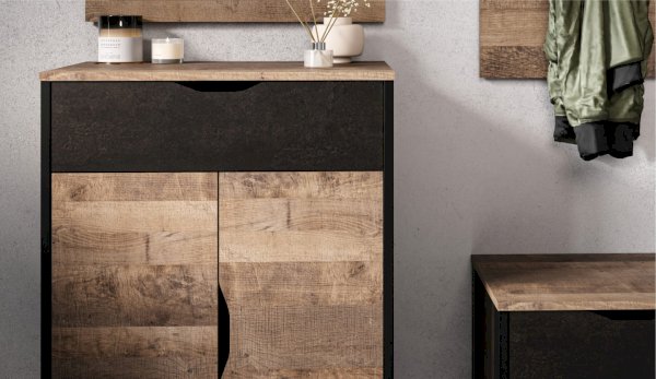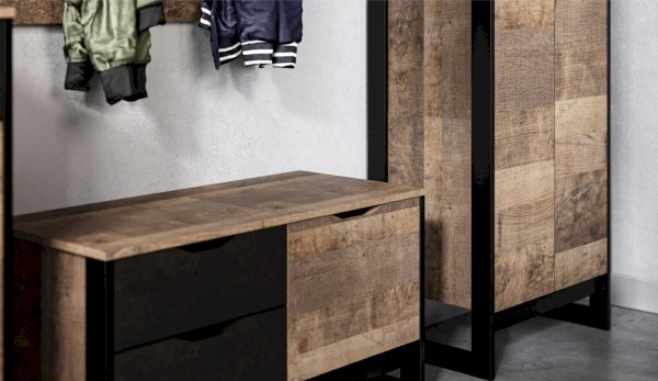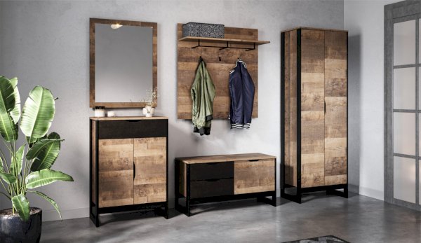 Стильная и лаконичная прихожая Стокгольм выполнена в стиле лофт. Особенность дизайна – это сочетание реалистичных по цвету и тактильности трендовых декоров, которые соответствуют последним городским тенденциям. «Дуб Гранж» привлекает песочным оттенком и имитацией вручную обработанного дерева с выразительной зернистой текстурой, характерной формой досок. Стильный серый цвет «Железного камня» с металлическими разводами и новая текстура состаренной штукатурки в сочетании с гладкостью металла вносят индустриальныи? колорит. Оригинальные ножки-опоры из контрастного профиля МДФ, расположенные по бокам модулей, имитируют металл и подчеркивают стиль коллекции. Прихожая функциональна: вешалка имеет дополнительные крючки, выдвижной ящик комода удобен для хранения мелочей и документов, а шкаф с поперечной штангой порадует своей вместимостью. Обувная тумба разместит в себе домашнюю и сезонную обувь.