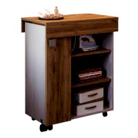 Невероятно практичная вещь – тумба Тео. Все дело в ее многофункциональности, ведь при необходимости модель с легкостью трансформируется в гладильную доску. Изделие дополнено полками, на которых можно хранить утюг и необходимые вещи, а также колесиками для большей мобильности. Тумба точно выручит владельцев малогабаритных квартир.