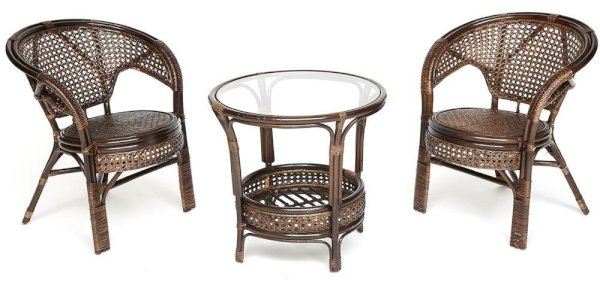 Комплект: 2 кресла + стол со стеклом