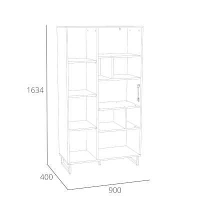 Шкаф оснащен распашной дверкой, которая закрывается мягко и легко за счет механизма с доводчиком, а газлифты фиксируют дверцу в открытом положении. Благодаря большому количеству закрытых и открытых ниш можно удобно расположить все необходимые книги и предметы интерьера, они не будут разбросаны в хаотичном порядке, а высокие опоры обеспечивают быстрый и комфортный доступ при уборке. Дополните шкаф стеллажом из одноименной коллекции, чтобы создать особо гармоничную атмосферу