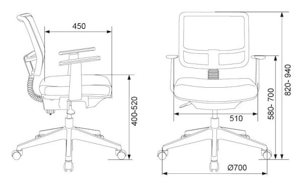 Высота с подлокотниками: 580-700