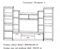 Ниша под ТВ (ШхВ): 1120х750 мм