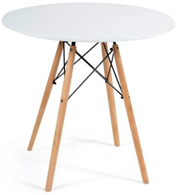 Стильный обеденный стол CINDY NEXT из коллекции Modern создан в стиле работ американских дизайнеров супругов Имз. В своих работах они стремились соединить два основных принципа: простоту и функциональность. Эти принципы удачно сочетает в себе стол CINDY NEXT. Он лаконичен, сдержан, легок и естественен. Визуальная легкость позволяет ему стать идеальным решением даже для небольшого помещения. Круглая форма стола, за которым могут комфортно разместиться четыре человека, располагает к приятному и непринужденному общению. Оригинальные ножки из массива бука и классическое металлическое крепление выгодно выделяют его среди привычной мебели. Надежная столешница из мдф, покрашенная в белый цвет, не требует сложного ухода, выдержит воздействие жидкостей и тепла. Эта элегантная и комфортная модель станет любимым местом отдыха в вашем доме. Стол отлично подойдёт для гостиной, для кухни, для дачи, для ресторана или для кафе. Стол очень прост в сборке, инструкция по сборке прилагается.