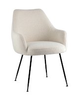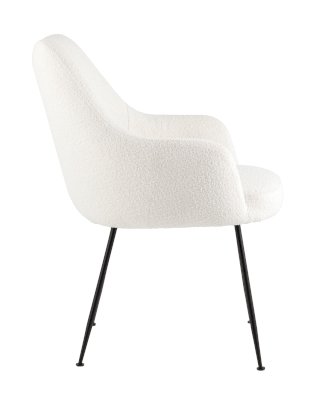 Изящный стул с комфортным сиденьем и спинкой. Основание и ножки черного матового цвета изготовлены из прочного металла. Обивка выполнена из прочной ткани с мягким ворсом в стиле букле, необычная фактура и мягкость добавляют стулу больше уюта.