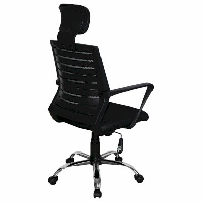 Высокая сетчатая спинка и подголовник, выраженная поддержка поясницы, прочные пластиковые подлокотники, хромированное пятилучие гарантируют комфортное долгосрочное использование.