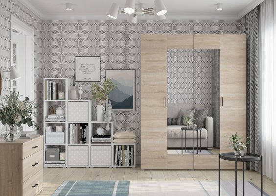 Шкаф 4-створчатый 1800 Комбинированный (2 створки с цветом фасада Венге, Белый или Сонома/2 створки Бетон или Крафт золото)